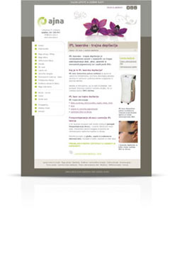 Lepotni in kozmetični salon AJNA nudi paleto storitev za nego in lepoto telesa. Spletna stran je uvrščena visoko v iskalnikih v širokem naboru ključnih besed. Število obiskovalcev tako preseže 3.000 mesečno. Njihovo študijo primera si lahko ogledate tukaj. Težje fraze so označene z rumeno barvo.